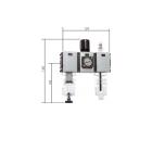 *Standard series, please use in preference, as the regulation range is universally applicable, **as soon as the inlet pressure falls below the minimum input pressure, the drain valve opens automatically. The semi-automatic drain valve can be prevented from opening by screwing the drain screw tight, ***installation of a standard pressure gauge only possible with a pressure gauge adapter, display range of the compact pressure gauge: 0 to 12 bar, or 0 to 6 bar