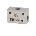Function: At outlet A a signal appears only if a signal exists on both inlets at the same time. For different pressures, the lowest pressure will reach outlet A. The UND member has no separate venting as a passive element. After deleting one or both input signals, ventilation occurs via the upstream signal members.