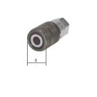 Advantages: •No dirt can penetrate, as the couplings on the smooth surface "flat face" can be simply wiped clean, •Due to the design of the coupling, axial forces can be absorbed well. Particularly suitable for use on hydraulic hoses.